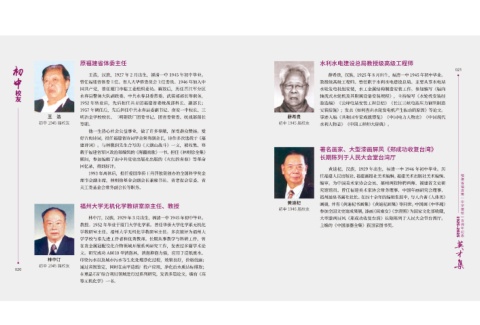 王 浩 明冶金学校校长、三明钢铁厂团委书记、团省委常委、统战部部长 薛希贵 事迹入编《共和国专家成就博览》《中国电力人物志》《中国现代
