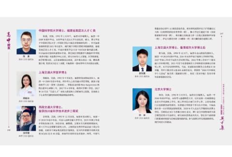 高中 2009 届校友 医学影像分析。主持省部级项目两项,其中重点项目一项,横向课 2017 年硕士毕业于同济大学材料学院,2021 年博士毕业于上海交