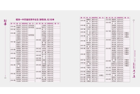 福清一中历届优秀毕业生(录取清、北)名单 高朝发 清华大学 2015 届 蔡晨希 北京大学 253