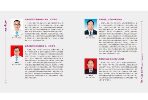 经外科脑外伤专业组副组长、福建省中西医协会神经外科分会常委、 硕士学位。2011 年起历任中国银行福建省分行营业部总经理、银行 1925-2025